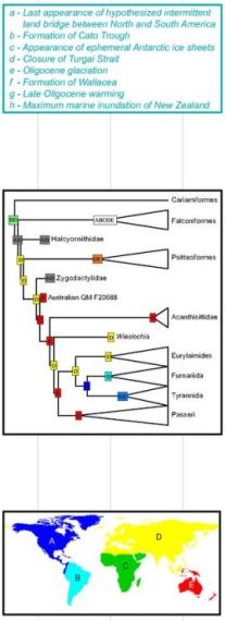 - Rapid continental drift and island formation in Wallacea allowing the dispersal of songbirds out of Australia.
