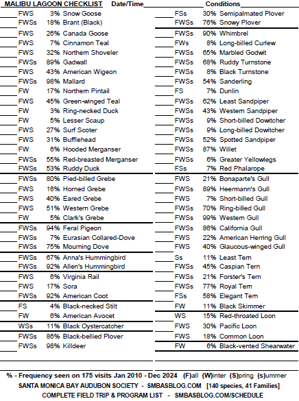 Click This Link for printable PDF of the Malibu Lagoon 2025 Checklist.